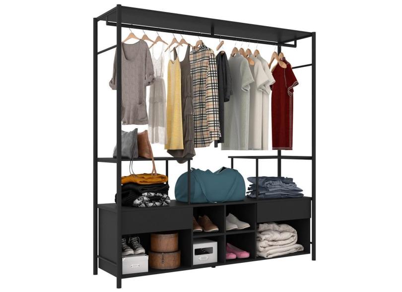 Guarda Roupa Closet Casal Industrial 174cm 2 Gavetas Barcelona Preto Texturizado - Artefamol