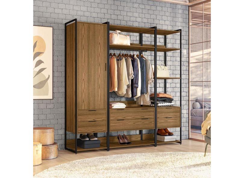 Guarda-Roupa Closet Industrial Mital 1 PT 6 GV Conhaque e Preto