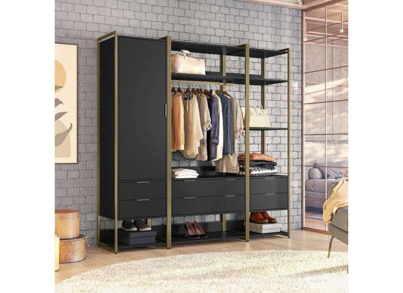 Guarda-Roupa Closet Industrial Mital 1 PT 6 GV Preto e Dourado