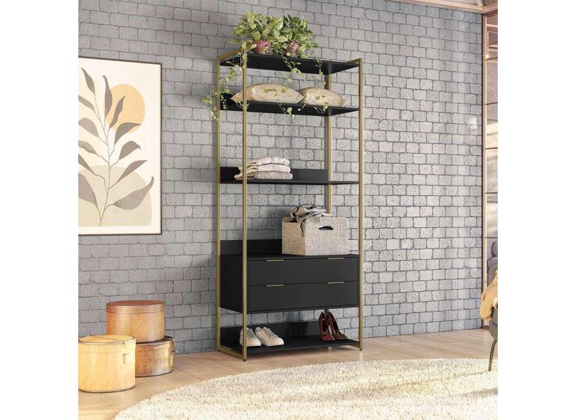 Guarda-Roupa Closet Industrial Mital 2 gv Preto e Dourado 89 cm