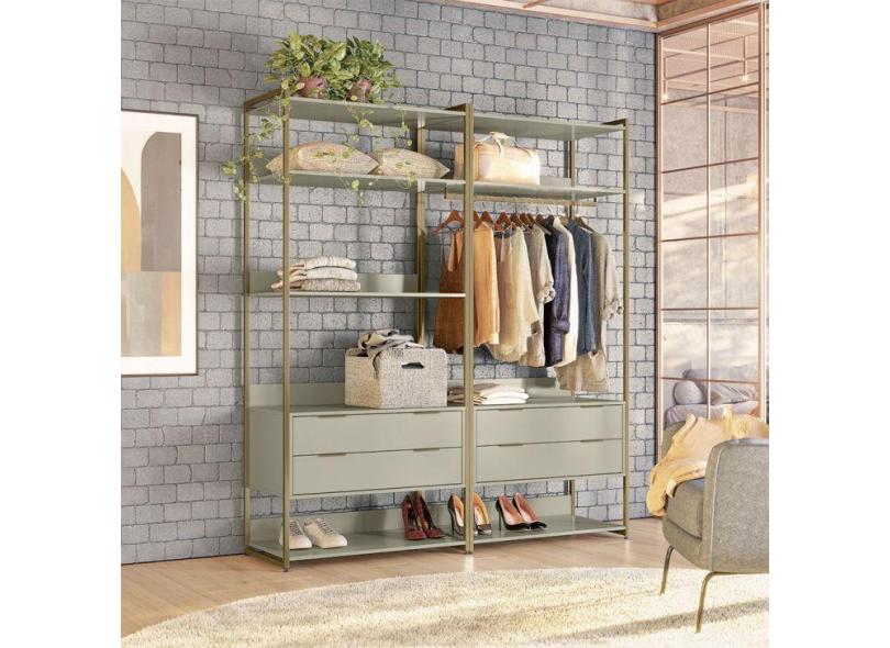 O menor preço encontrado no Brasil para Guarda-Roupa Closet Industrial Mital 4 GV Off White e Dourado 178 cm atualmente é R$ 1.392,66.