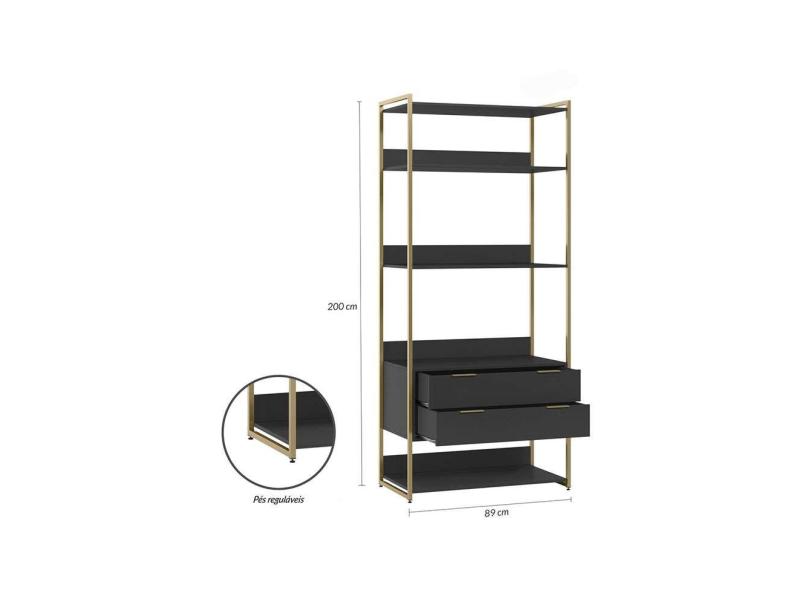 Guarda-Roupa Closet Industrial Mital 4 gv Preto e Dourado 143 cm