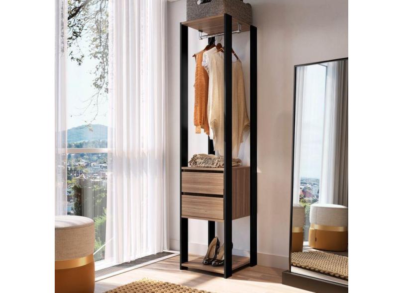 Guarda-Roupa Closet Merlin com Cabideiro 2 GV Preto e Montana 183x40 cm