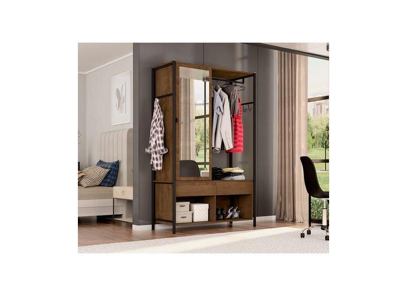 Guarda-Roupa Closet Modulado Com Espelho New Barcelona 1 Pt 2 Gv Preto