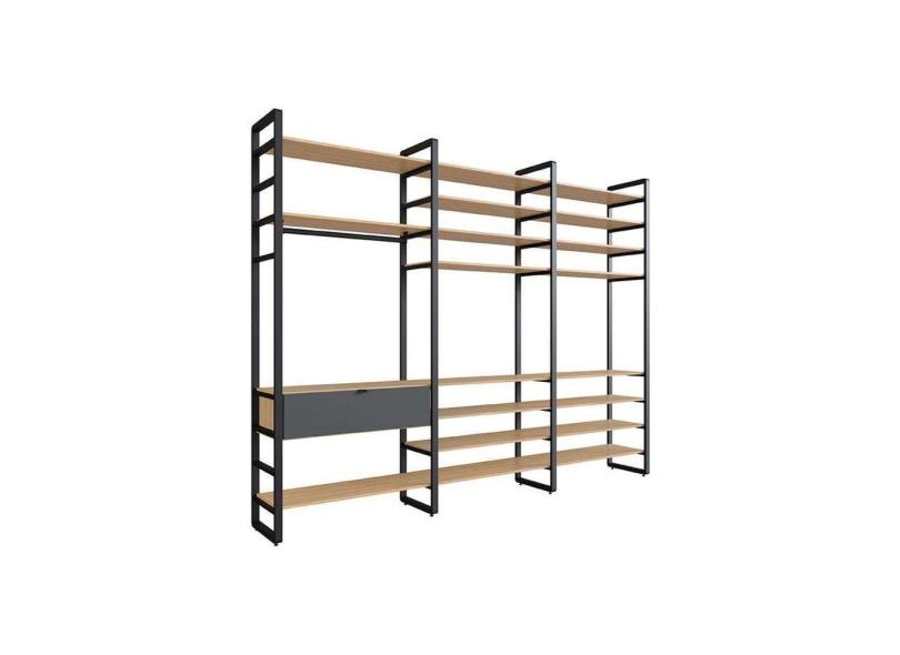 guarda-roupa closet modulado industrial philly 1 gv cedro e grafite 294 cm
