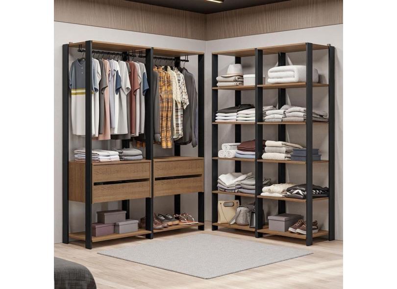 Guarda-roupa Closet Modulado Valencia 4 Gavetas 358cm Rustic/preto Madesa 03 Rustic/preto