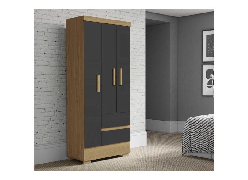 Guarda Roupa Coimbra 3 Portas 2 Gavetas Atacama Grafite - Aramóveis