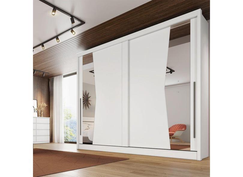Guarda-roupa Com 2 Portas De Correr E 6 Gavetas Com Espelho Geom Plus Novo Horizonte Branco