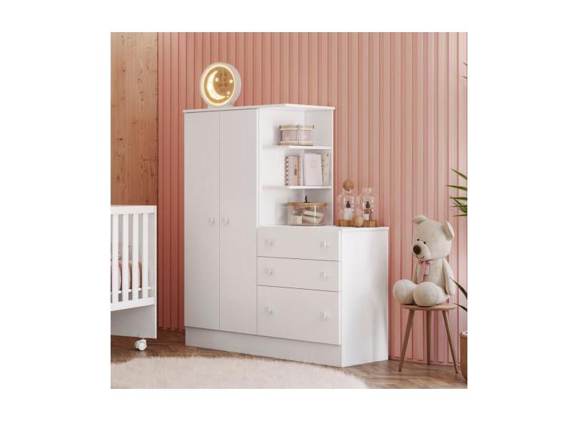 Guarda Roupa com Cômoda Conjugado Infantil Doce Sonho Branco - Q Movi