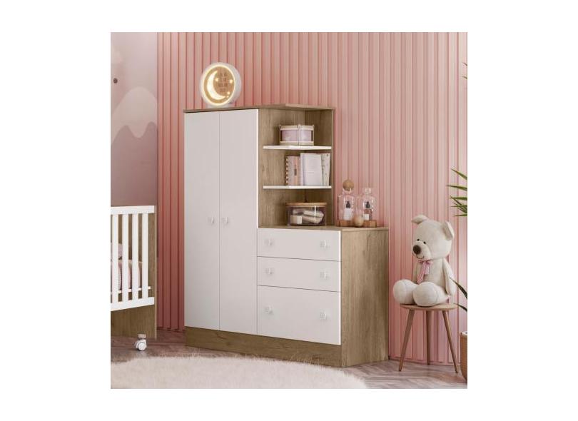 Guarda Roupa Com Cômoda Conjugado Infantil Doce Sonho Carvalho-Branco