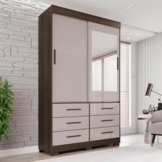 Guarda Roupa com Pés e Espelho 2 Portas 6 Gavetas Luana