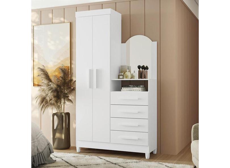 Guarda Roupa Cômoda Capri 2 Portas 4 Gavetas e Espelho