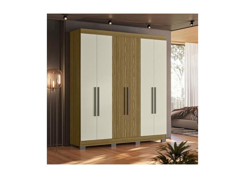 Guarda Roupa Dakota Casal 6 Portas Ripado Freijó/off White