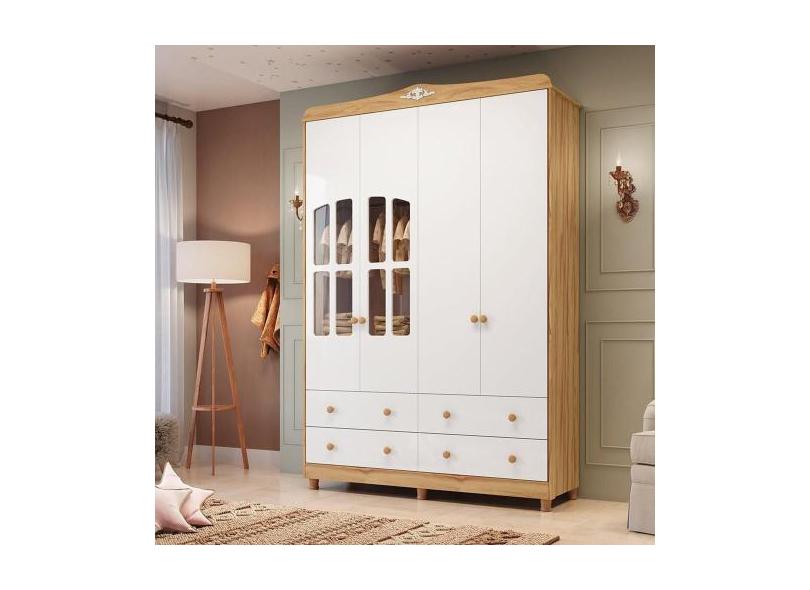 Guarda-Roupa De Bebê 156,80cm 4 Portas Com Janela E 4 Gavetas 100% Mdf