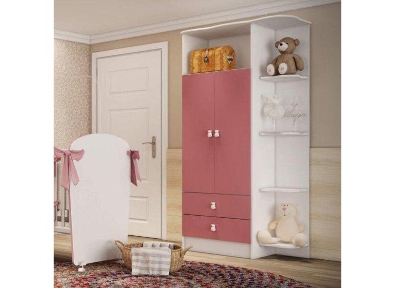 Guarda Roupa de Bebê 2 Portas 2 Gavetas Baby Branco/Rosa
