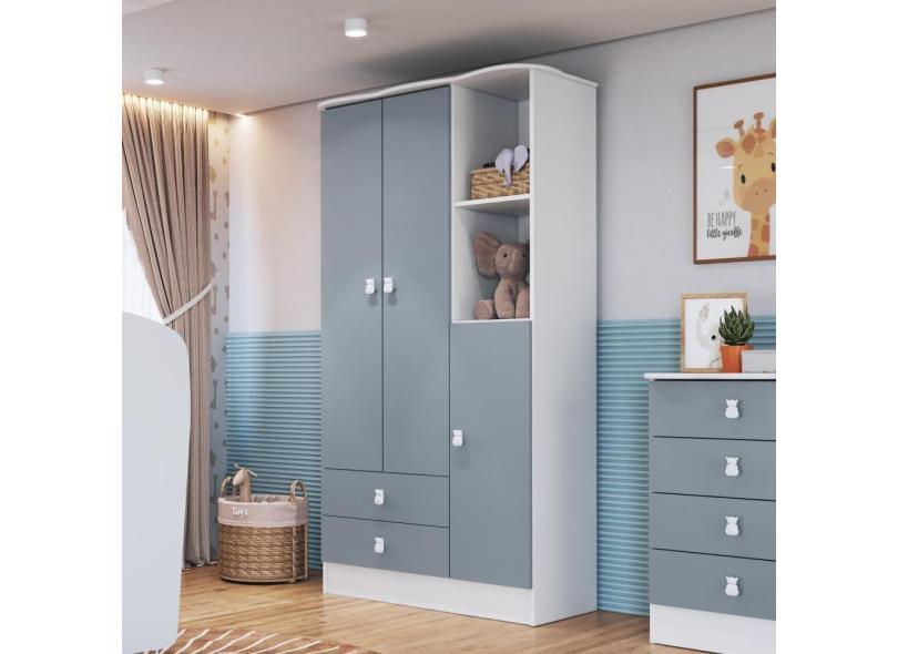 Guarda Roupa de Bebê 3 Portas 2 Gavetas Branco/Azul