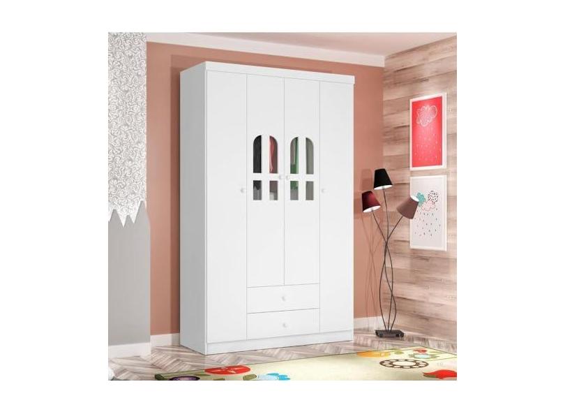 Guarda Roupa de Bebê 4 Portas 2 Gavetas Alvin Branco
