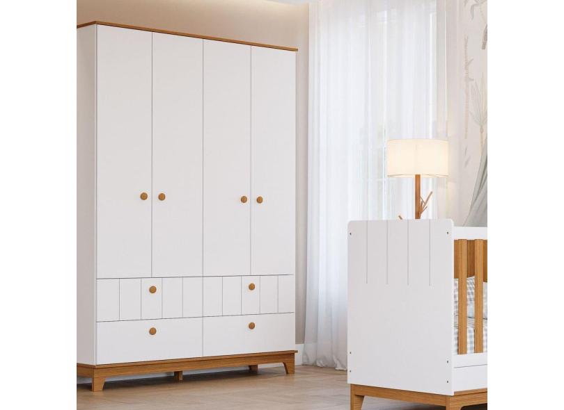 Guarda Roupa de Bebê 4 Portas 4 Gavetas Chantilly Expresso Móveis Branco/Marrom