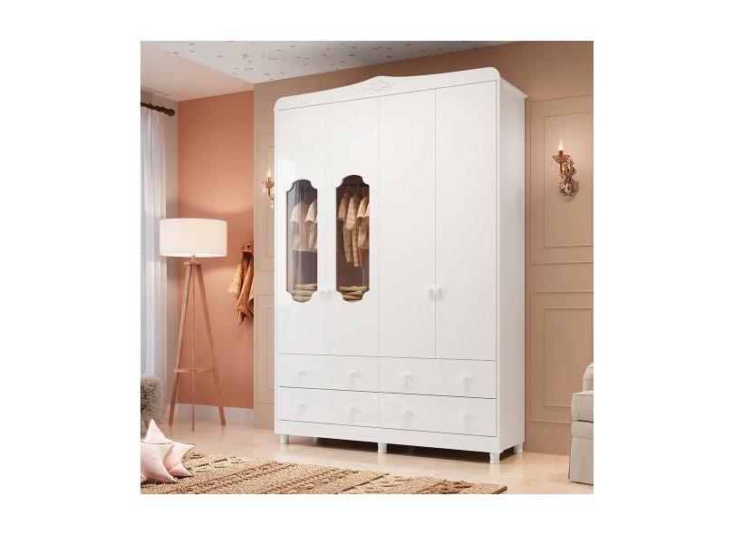 Guarda Roupa de Bebê 4 Portas com Janela e 4 Gavetas Maya Provençal Es