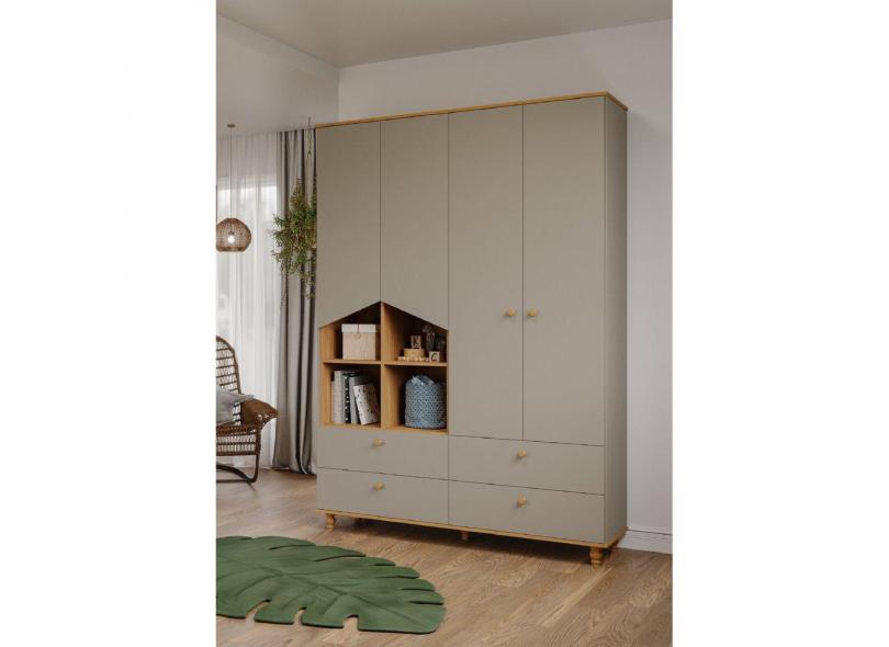 Guarda Roupa de Bebê 4 Portas e 4 Gavetas Bala de Goma Espresso Móveis Cinza/Nature