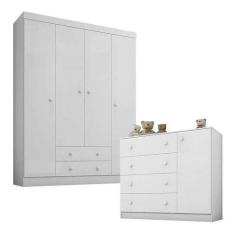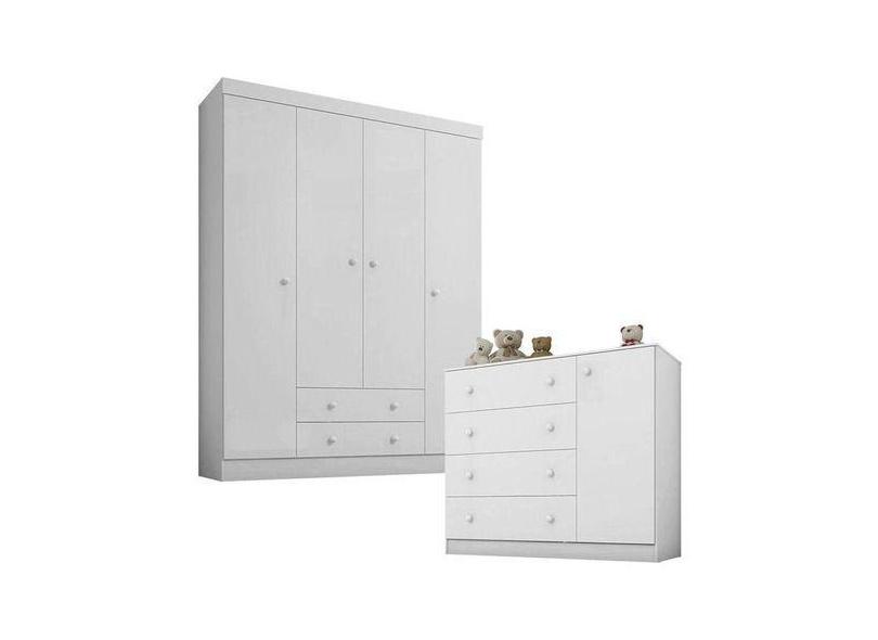 Guarda Roupa De Bebê 4 Portas E Cômoda 4 Gavetas 1 Porta - Phoenix Bab