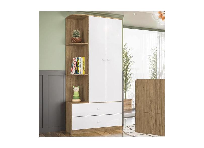 Guarda-Roupa De Bebê Labirinto 2 Portas 2 Gavetas Rústico/Branco - Hen