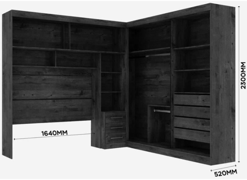 Guarda-Roupa de Canto com Espelho 4 Portas 7 Gavetas Sparta New Leifer Móveis
