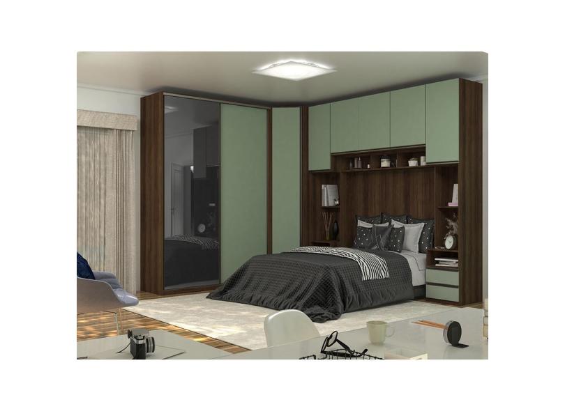 O menor preço encontrado no Brasil para Guarda Roupa de Canto Casal com Vidro Reflecta Nogueira Dourado com Verde Jade Prime Luciane Móveis atualmente é R$ 10.133,21.