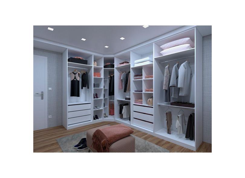 Guarda Roupa De Canto Closet 5 Módulos Sem Portas 6 Gavetas E 6 Cabideiros Prime Branco