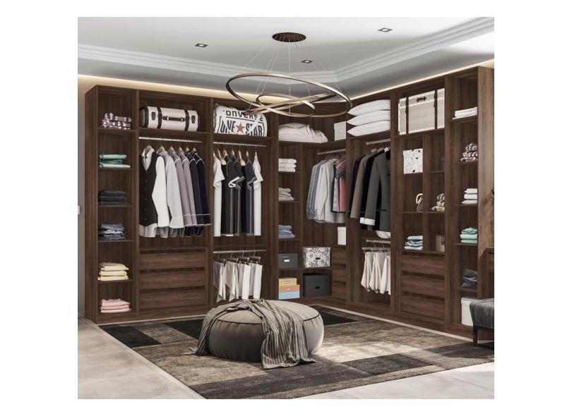 Guarda Roupa De Canto Closet 6 Módulos Sem Portas 9 Gavetas E 6 Cabideiros Prime Luciane Móveis Nogueira Dourado