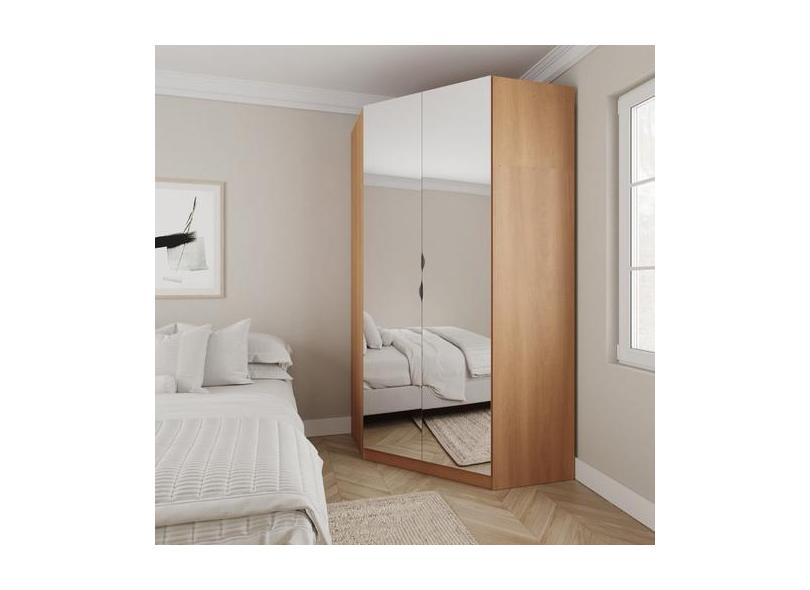 Guarda Roupa De Canto Closet Com 6 Prateleiras E Portas De Espelho Mod