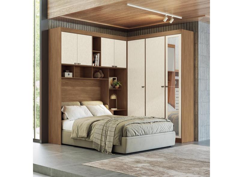Guarda Roupa de Canto com 7 Portas 4 Gavetas Cabeceira e Espelho Lugano Santos Andirá - Jatoba/Areia