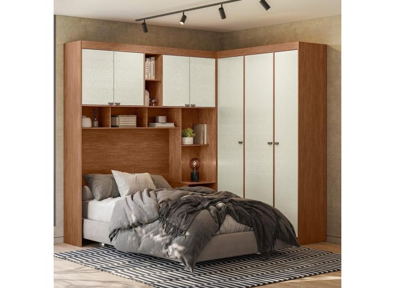 Guarda Roupa de Canto com 7 Portas 4 Gavetas e Cabeceira Lugano Santos Andirá - Jatoba/Areia