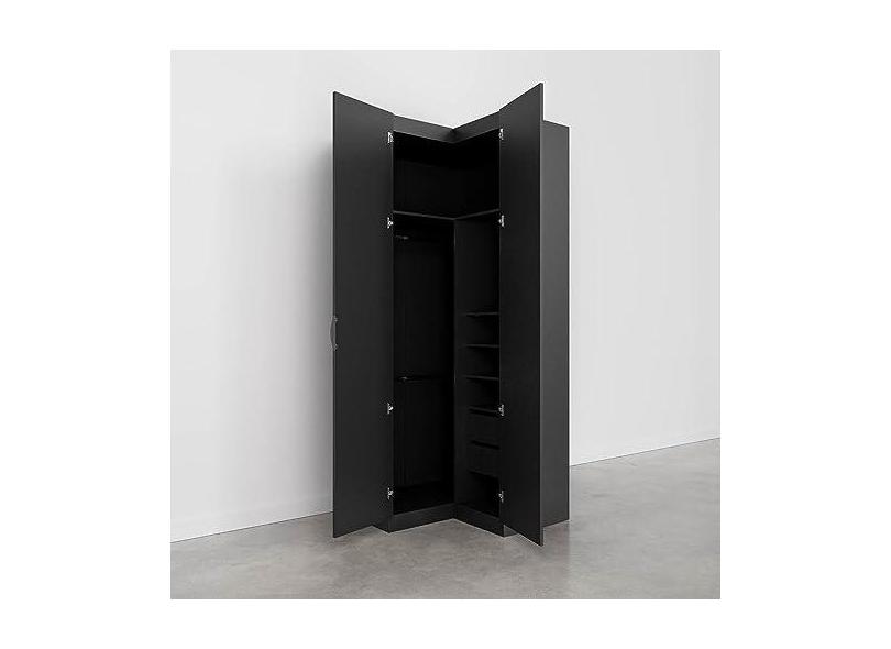 O menor preço encontrado no Brasil para Guarda Roupa de Canto Reto Modular 3 Prateleiras 2 Gavetas Hera Cabecasa Madeiramadeira Preto atualmente é R$ 2.541,16.