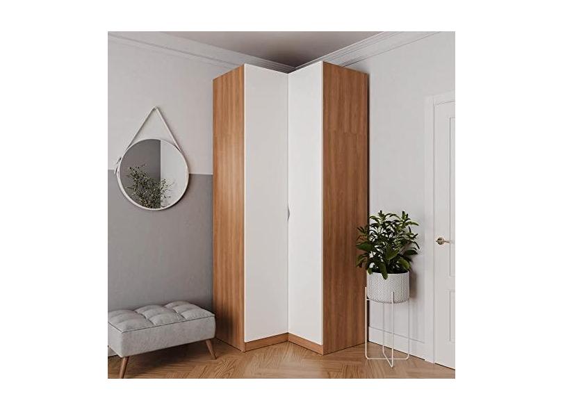 Guarda Roupa de Canto Reto Modular Hera com 3 Prateleiras 2 Gavetas Cabecasa Madeiramadeira Louro/branco Geada