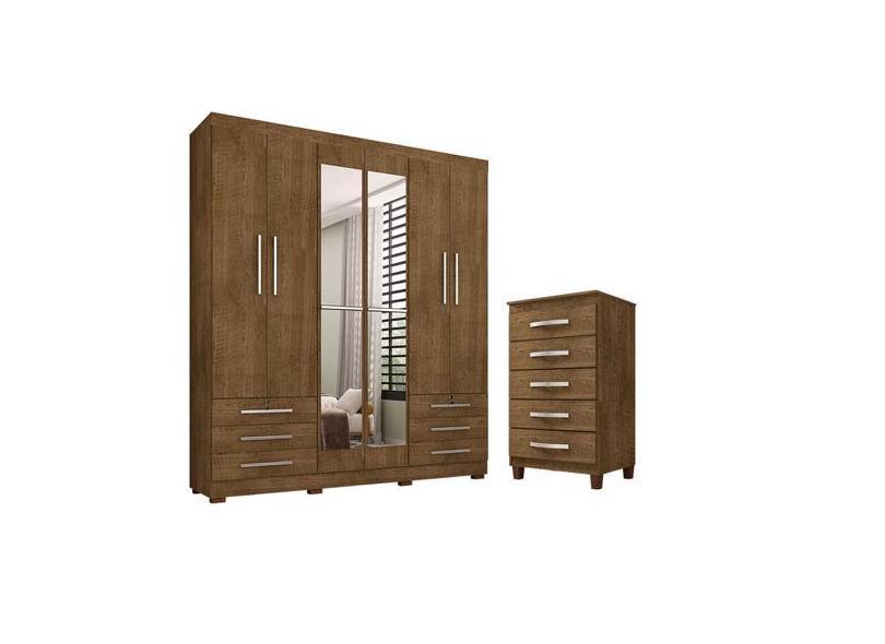 Guarda Roupa De Casal 6 Portas Com Espelho Londres E Cômoda 5 Gavetas