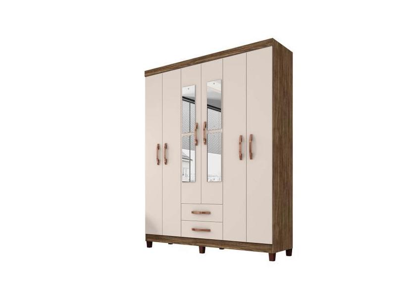 Guarda Roupa De Casal 6 Portas E 2 Gavetas Com Espelho Manchester - Éd