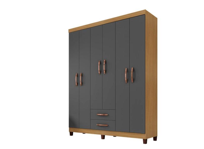 Guarda Roupa De Casal 6 Portas E 2 Gavetas Sem Espelho Manchester Cor 391 - Carvalho - Grafite