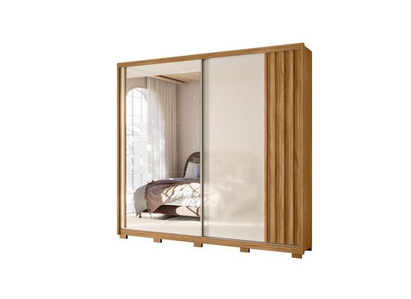 Guarda Roupa Dhara 242cm 2 Portas Freijó Off White Com Espelho Moval
