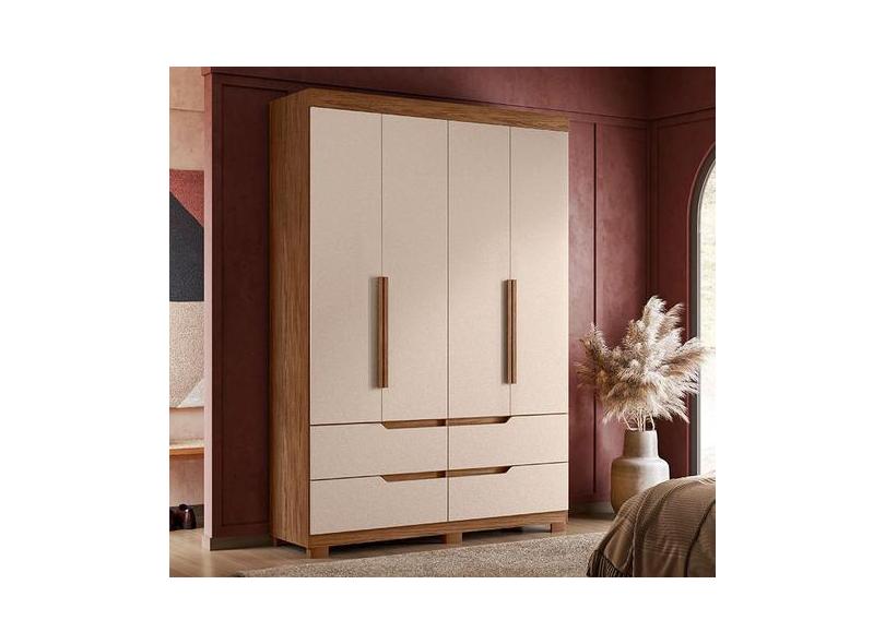 Guarda Roupa Doble 4 Portas E 4 Gavetas Avelã/Fendi Metallic - Albatro