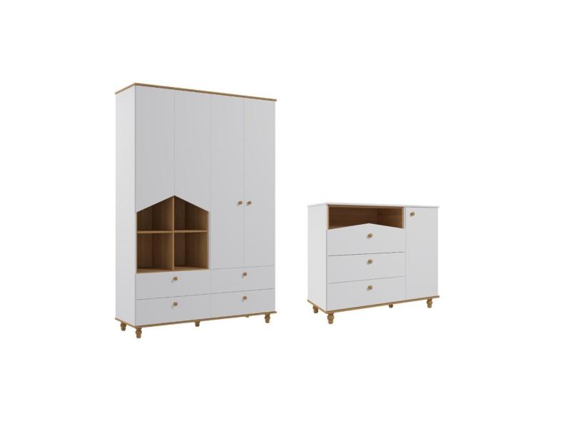 Guarda Roupa e Cômoda Retro Casinha Permobili mdf