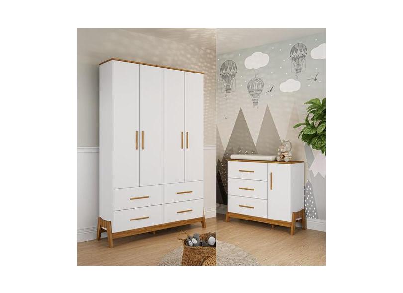 O menor preço encontrado no Brasil para Guarda Roupa E Cômoda Retro Moveis Peroba Guti Mdf Branco Amêndoa atualmente é R$ 1.512,91.