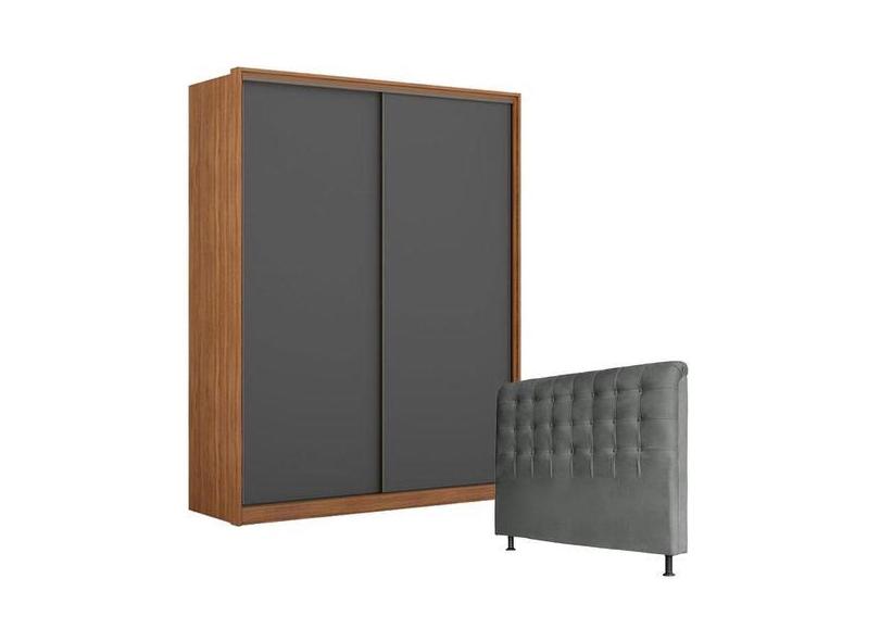 Guarda Roupa Épico 2 Portas Amêndola Grafito Com Cabeceira Ana 140 Cm