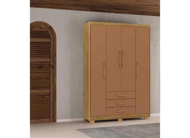Guarda Roupa Espanha 4 Portas e 3 Gavetas - Cor Nature / Camarim - Vila Rica