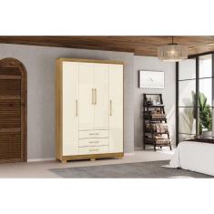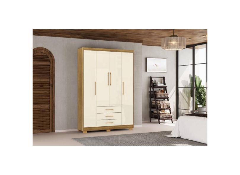 Guarda Roupa Espanha 4 Portas e 3 Gavetas - Cor Nature / Champanhe - Vila Rica