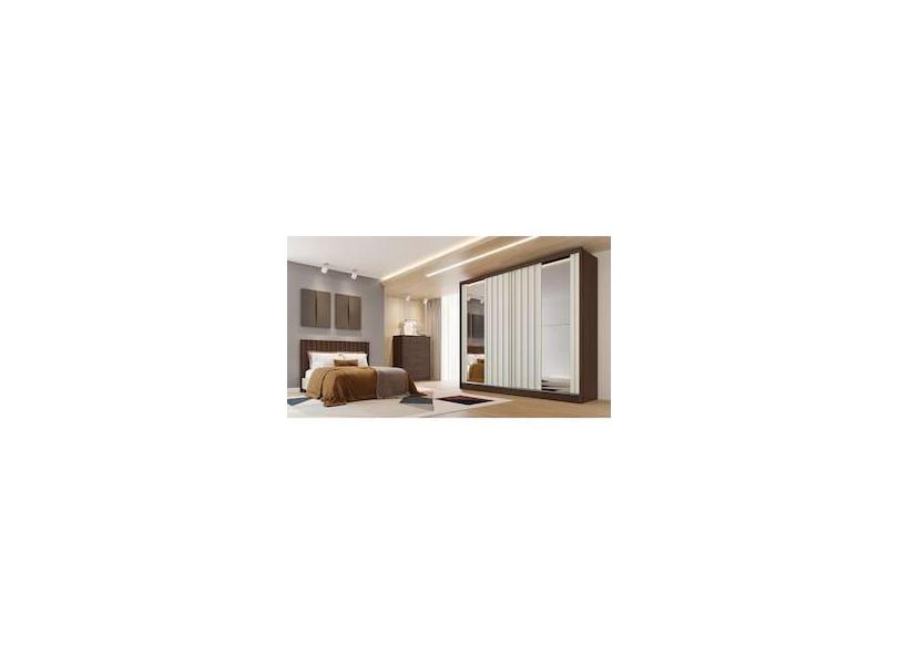 Guarda-Roupa Europa Mademarques Córdoba com espelho, 2 portas de correr, 4 gavetas e 15 prateleiras - 226 cm de Largura
