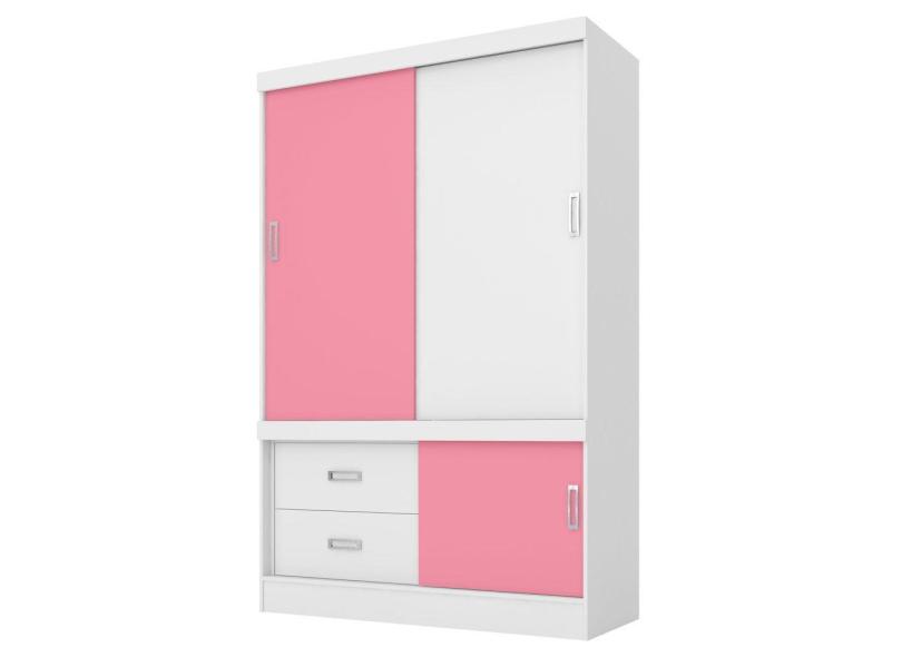 Guarda Roupa Flex 3 Portas 2 Gavetas Branco/Rosa/Branco