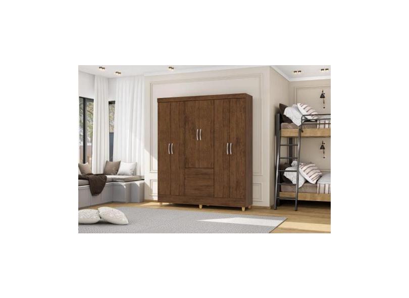 Guarda Roupa Ideal Plus 6 Portas e 2 Gavetas - Cor Imbuia Rústico - Vi