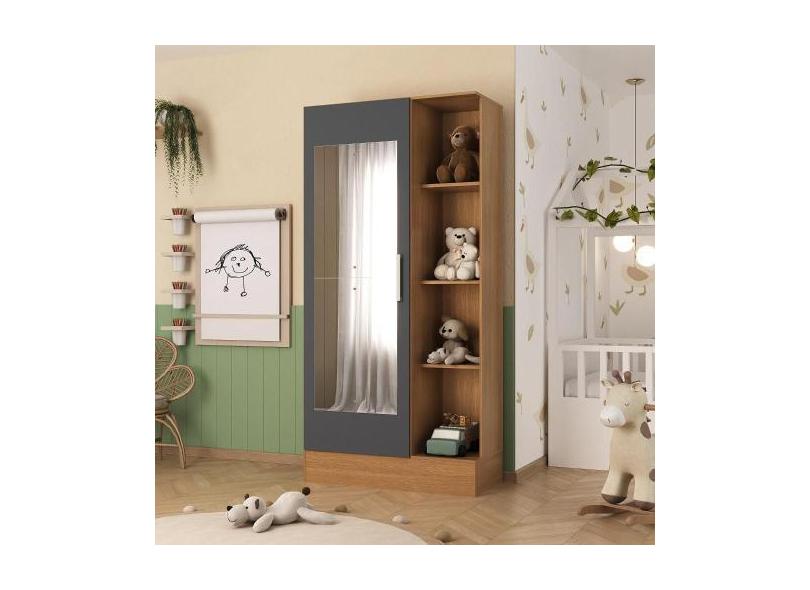 Guarda Roupa Infantil 1 Porta com Espelho Sara Cinamomo/Chumbo - Espre