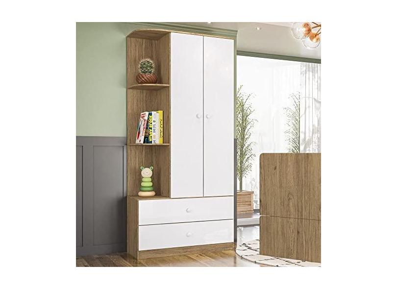 Guarda Roupa Infantil 2 Portas 2 Gavetas Amarelinha Henn Rústico/branco